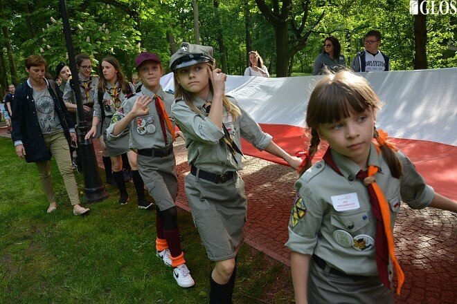 200-metrową flagą Skierniewice uczciły Dzień Flagi